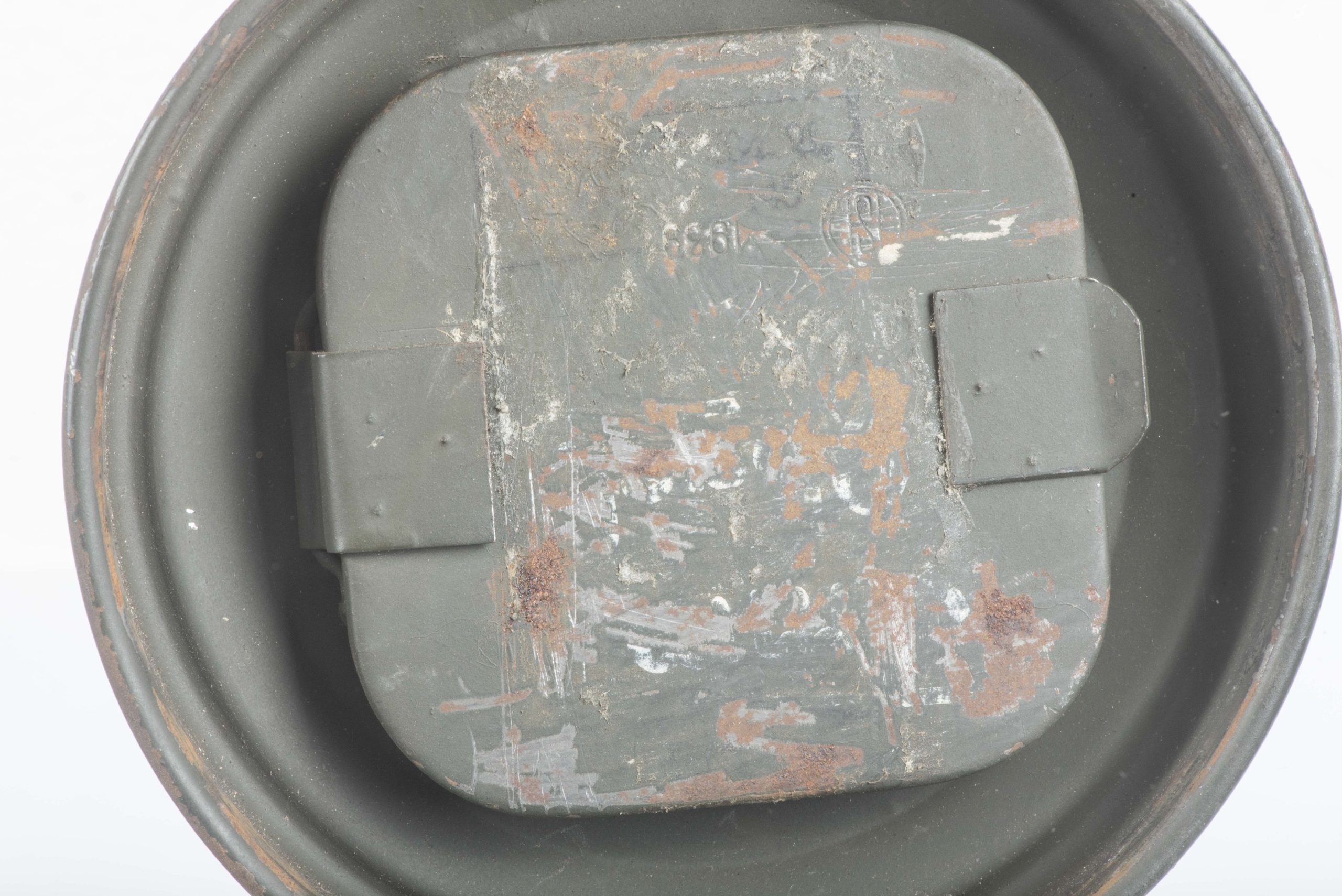 Tall M38 gasmask set with field applied Feldgrau paint named Ogefr Imm 42931