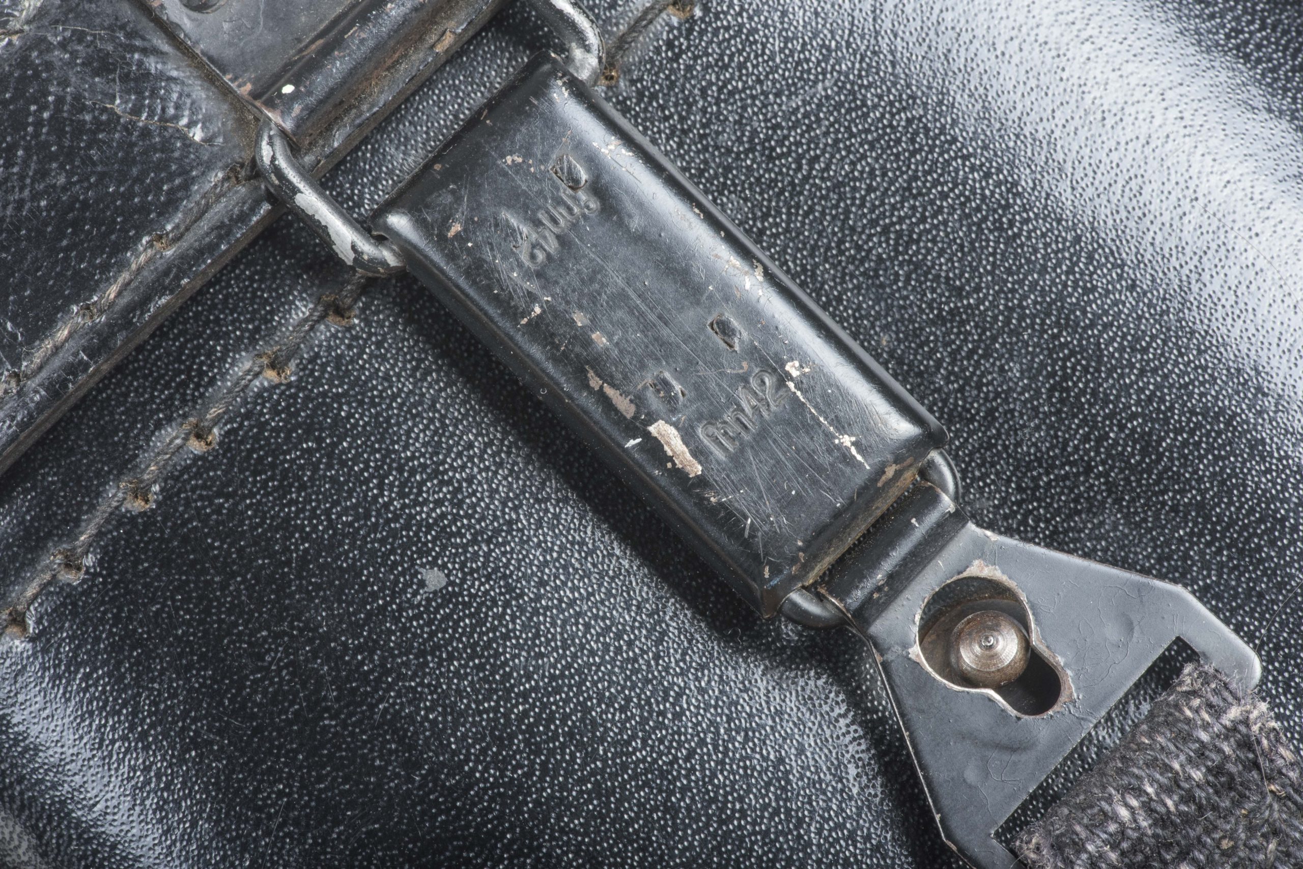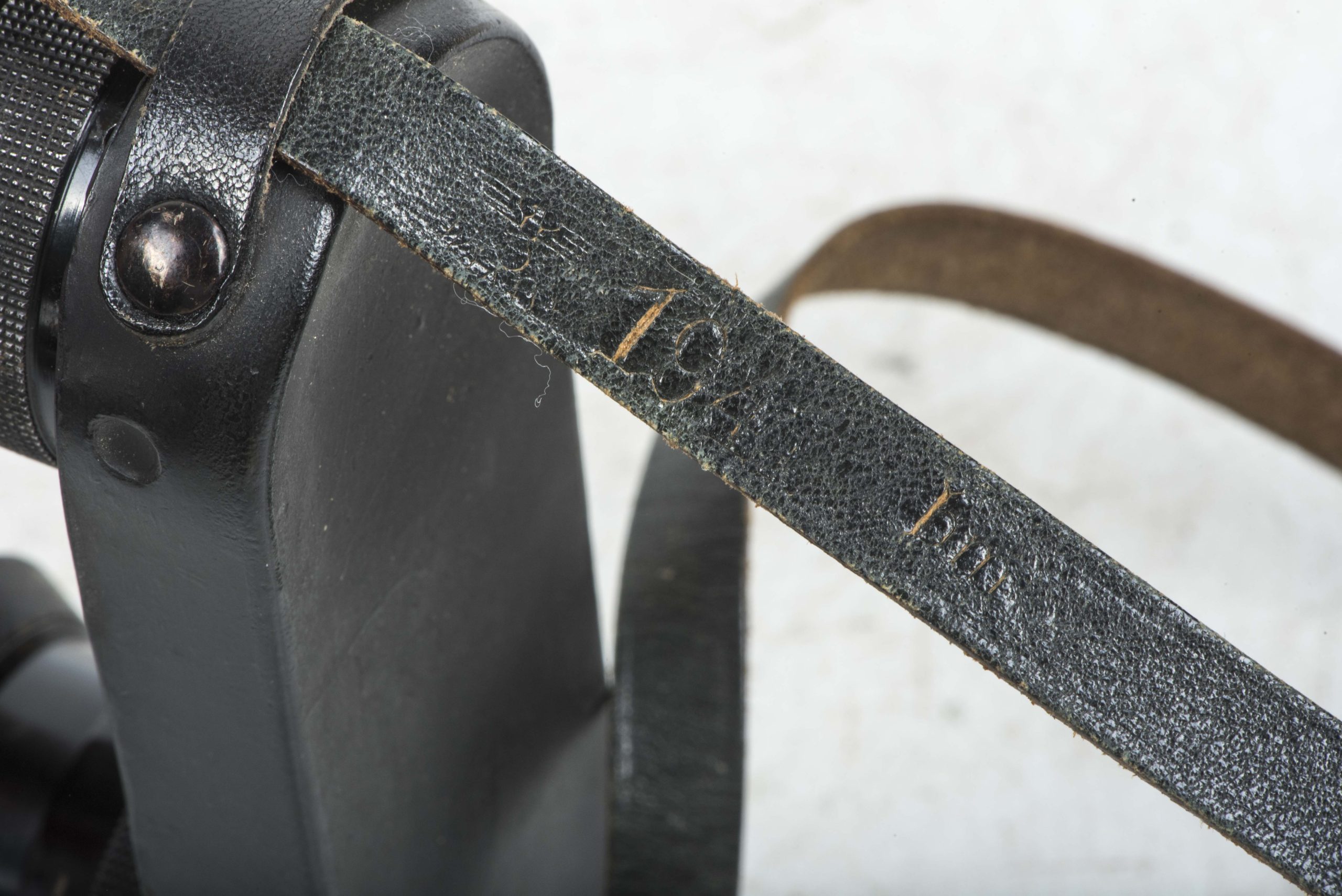 Tan 10×50 Dienstglas set marked bmj 589749 in good used condition. Complete with case named Erkinger, marked bmj 1944. The binoculars are complete with strap, rain cover and Knopflasche. Nice set!