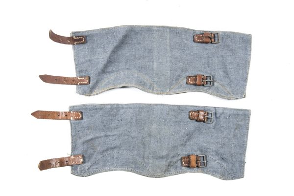 Two left Luftwaffe Gamaschen in good used condition. These are two left examples, both matching and probably still great on a mannequin. Luftwaffe blue Gamaschen are hard to find!
