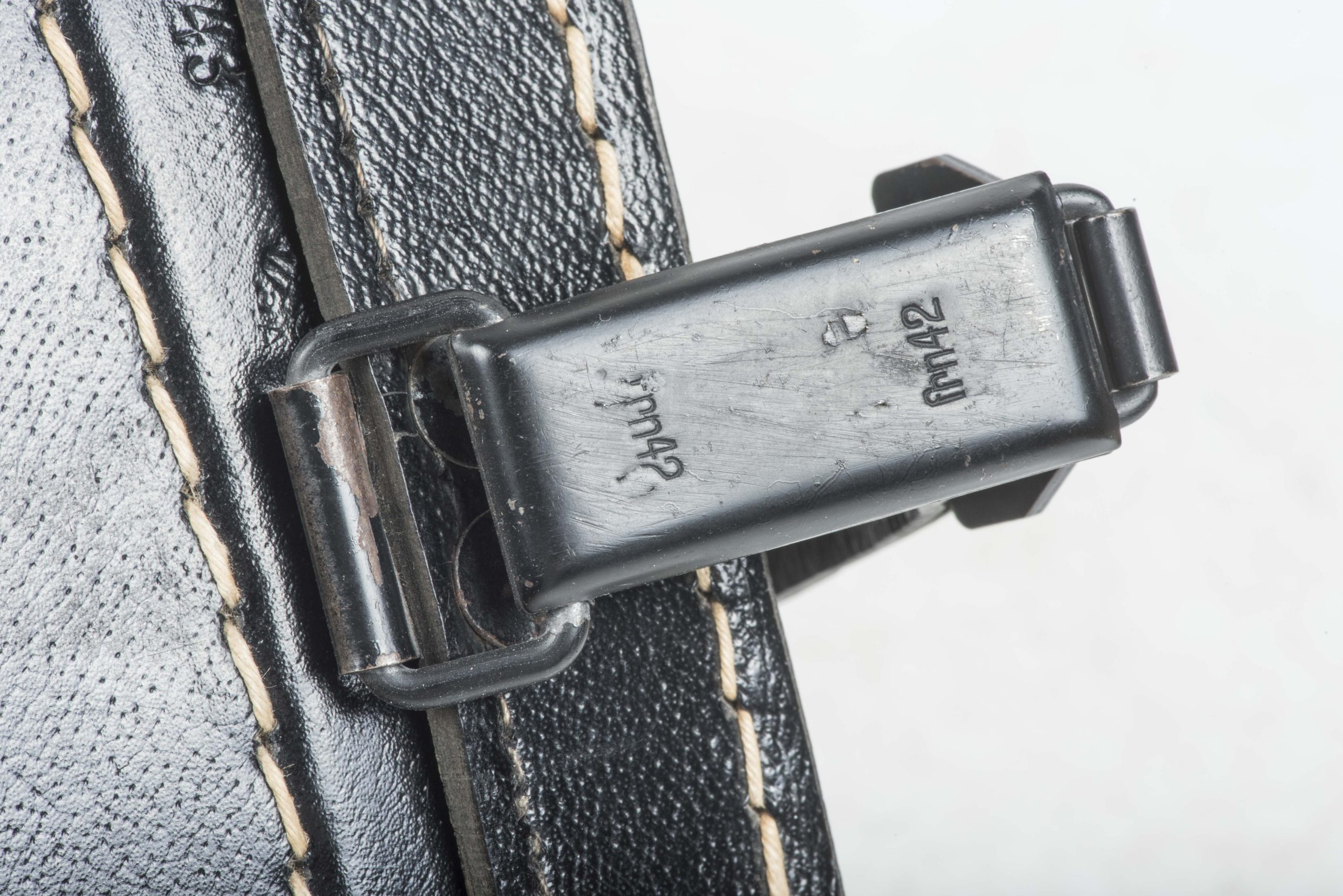 Nice carrying case for the 7/10X50 binoculars or Dienstglas made out of black coloured Pressstoff. The case is nicely marked ksd 1943 which indicates production by an unknown manufacturer. Nice example!