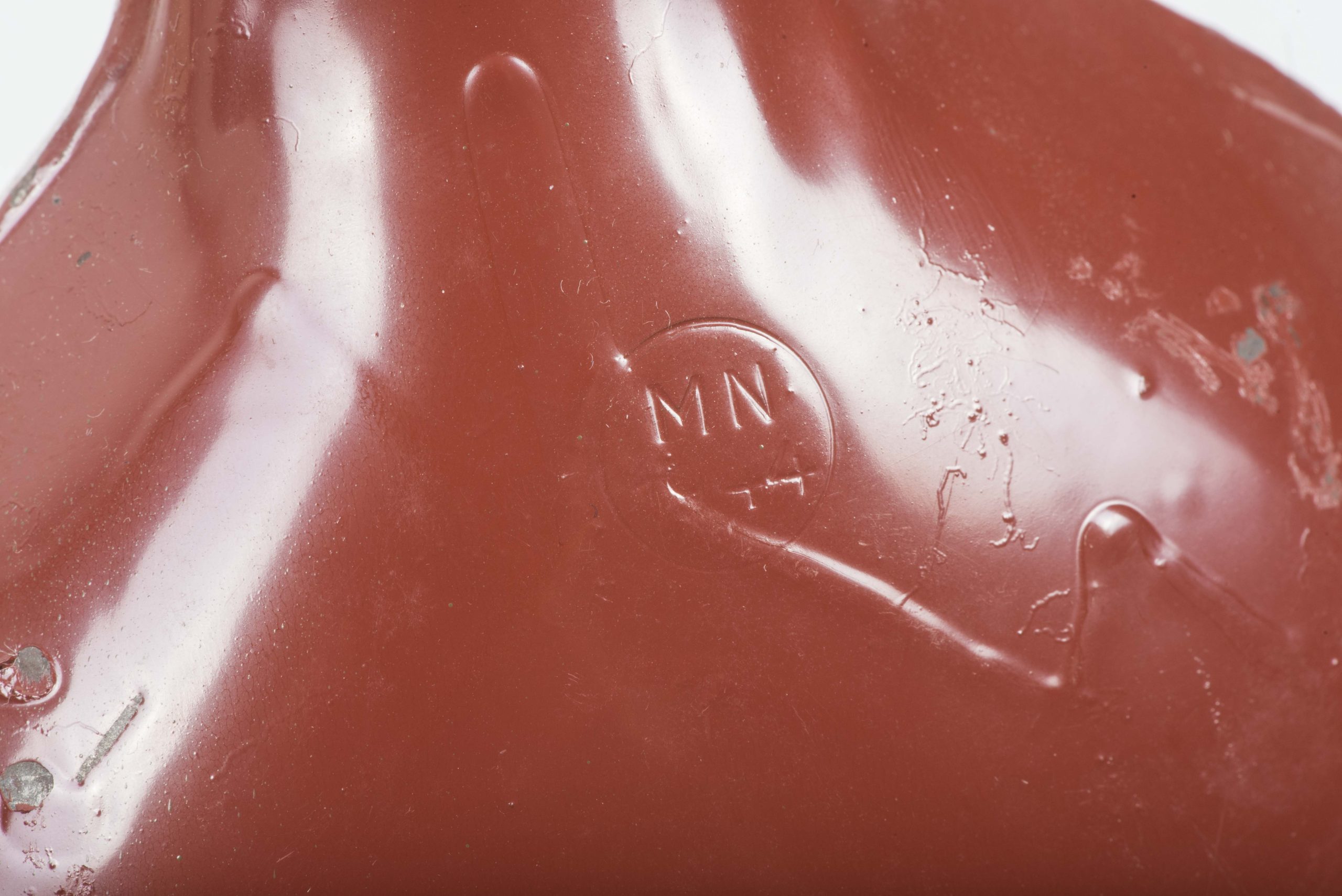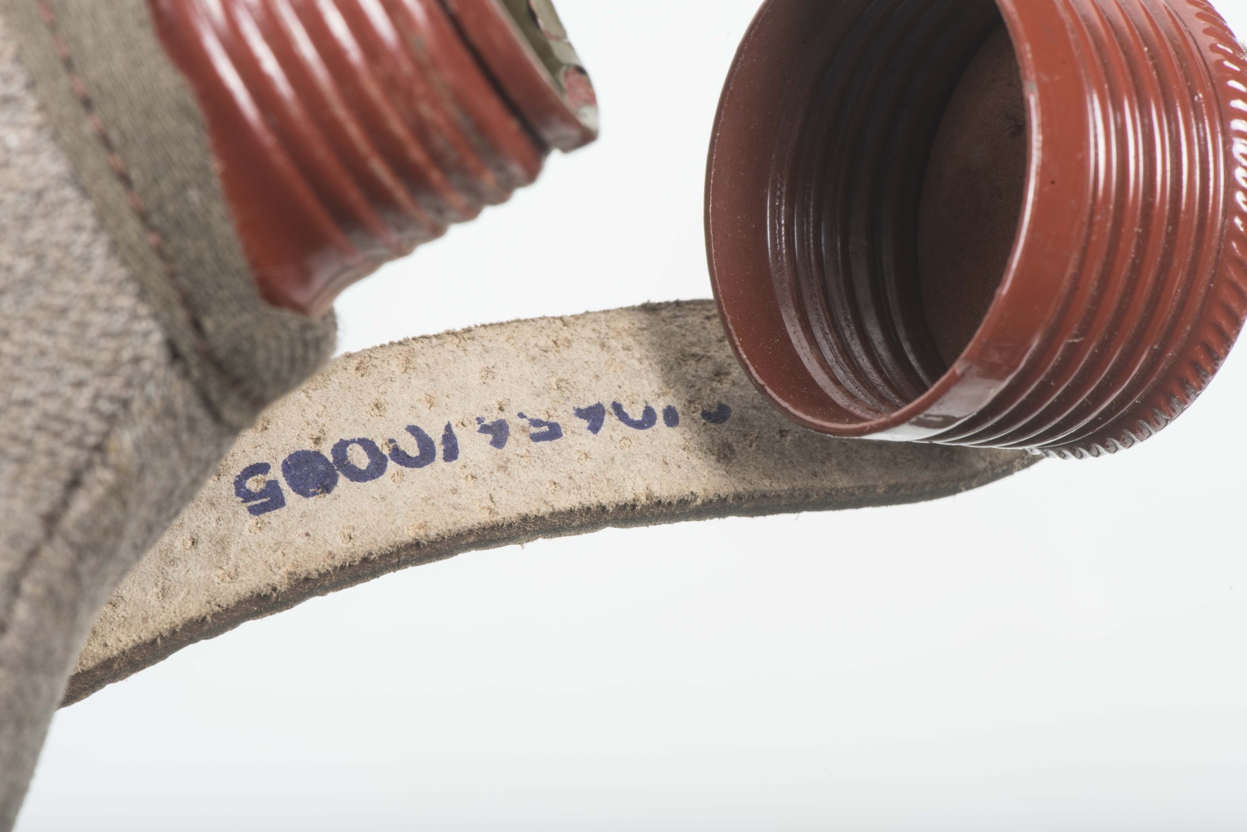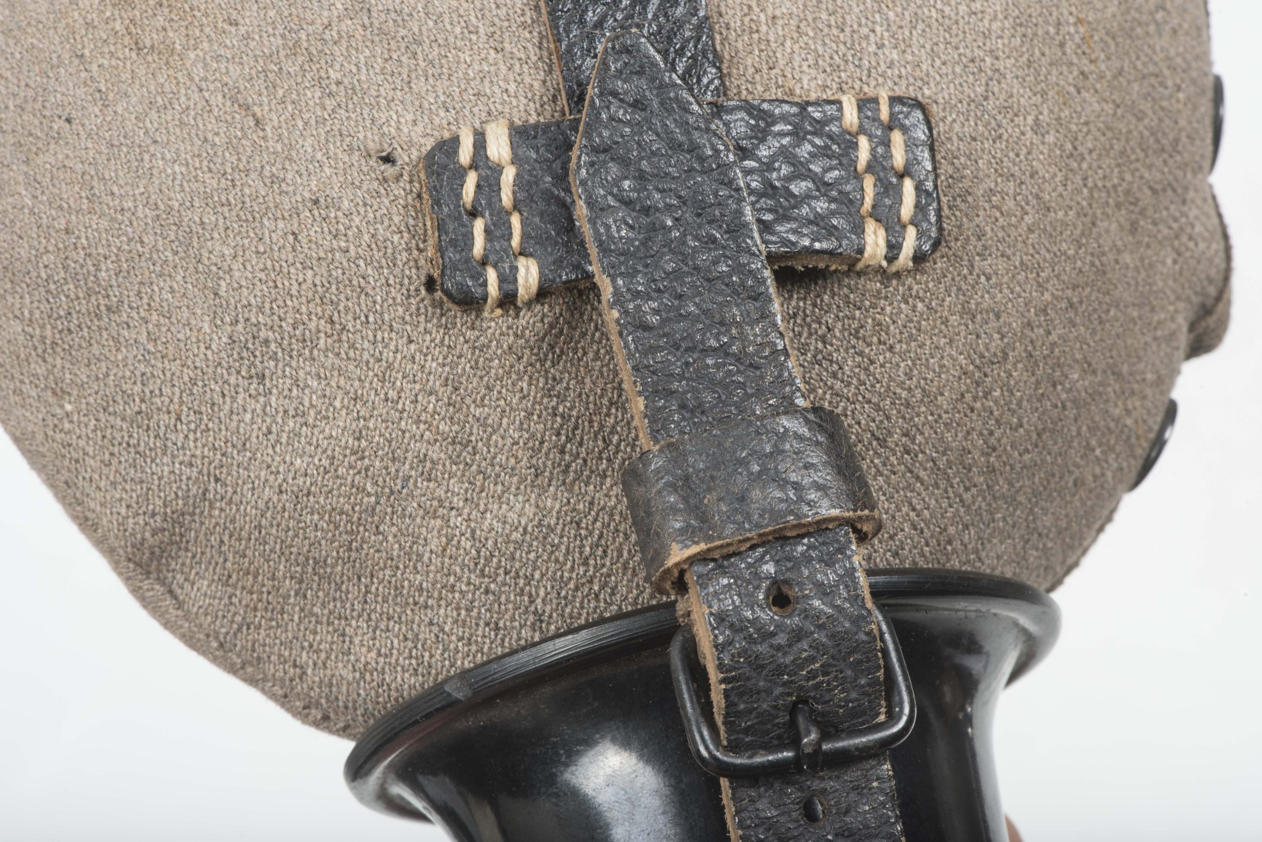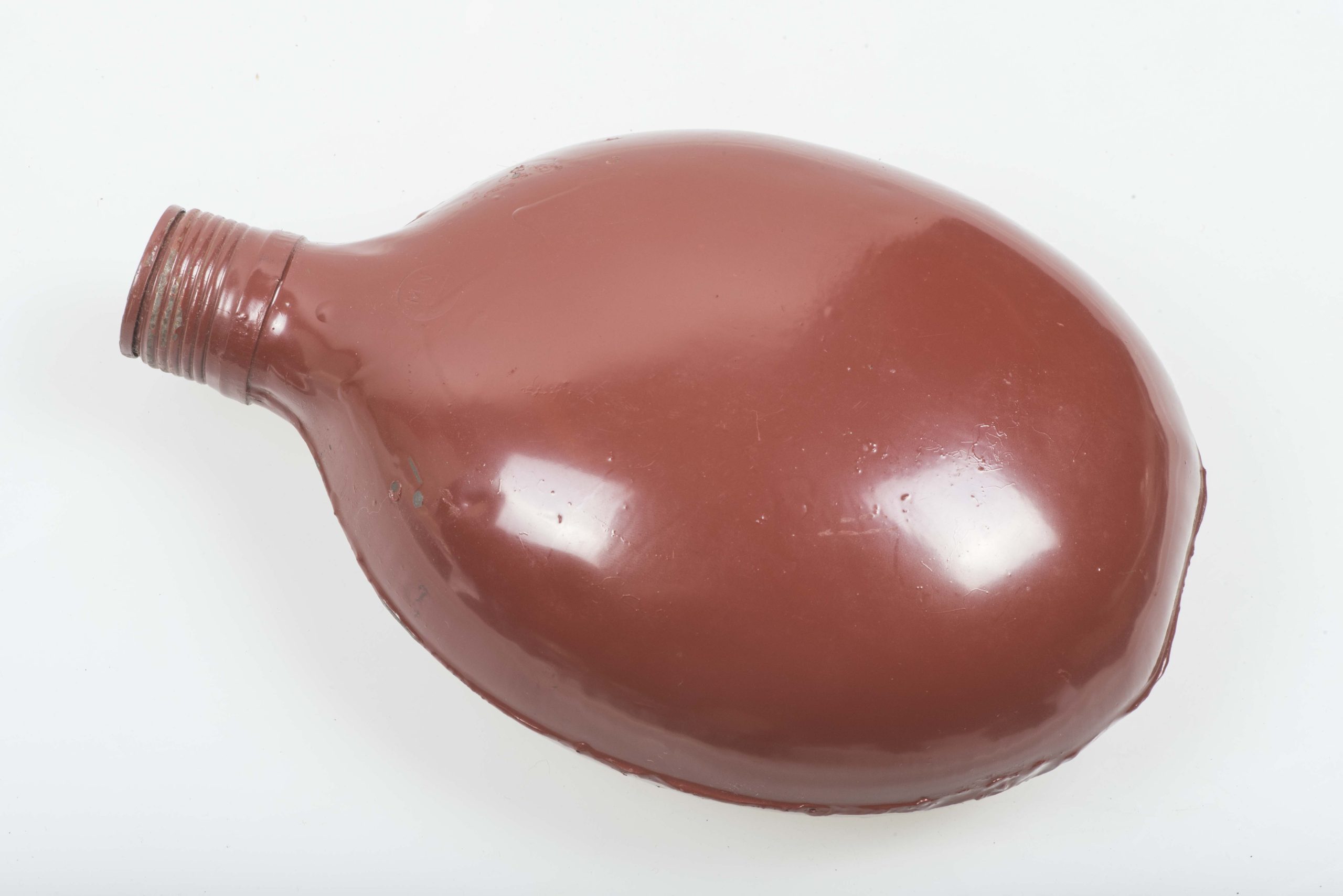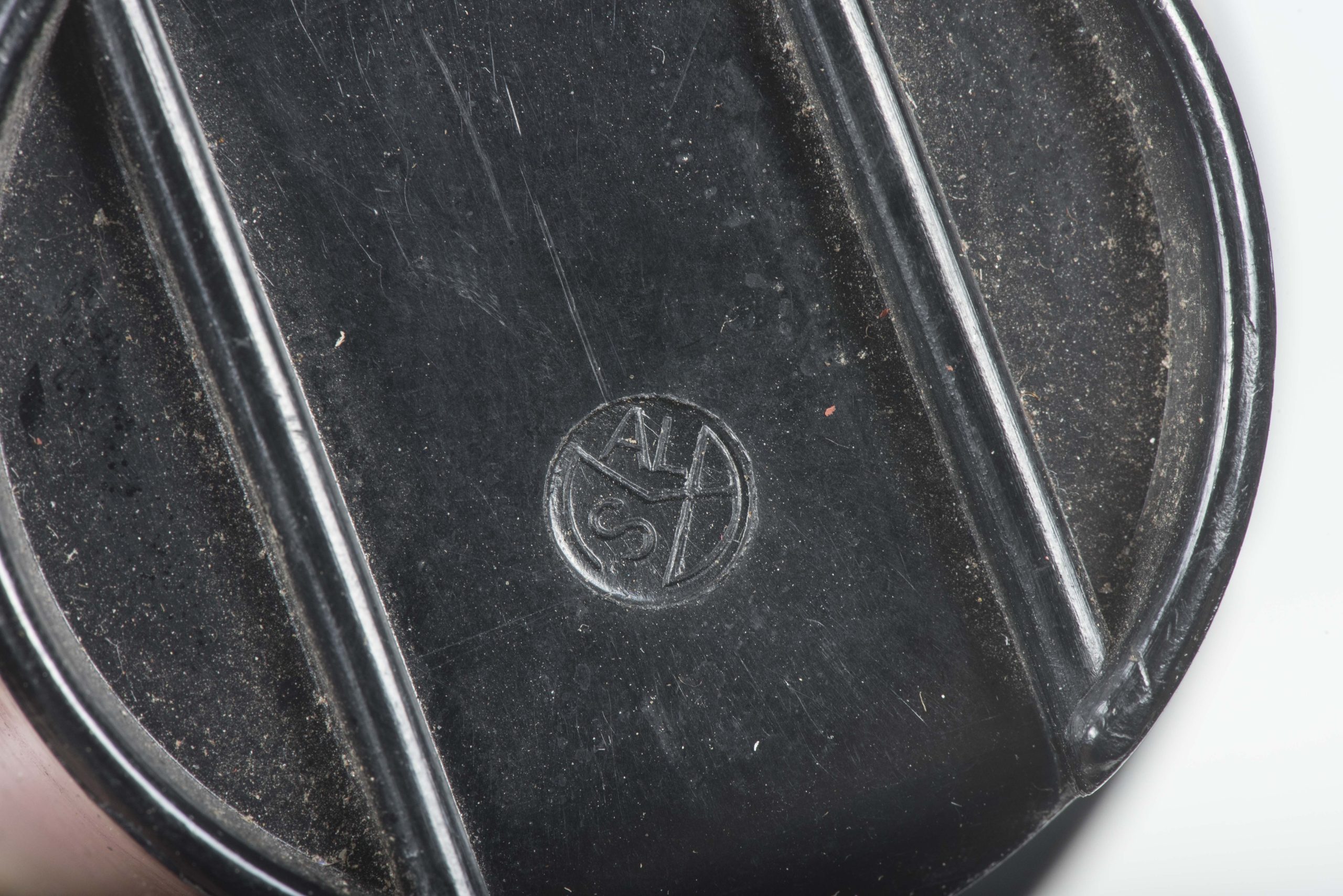 Stone mint and unissued M42 canteen in textbook configuration. The flask itself is nicely marked MN 44 which indicates production by Metallindustrie GmbH. Neunkirchen-Saar (MENESA) in 1944 and comes in configuration with a black bakelite cup marked AL/S. The strap is a textbook late war two piece construction example made out of smooth leather. Perfect example!