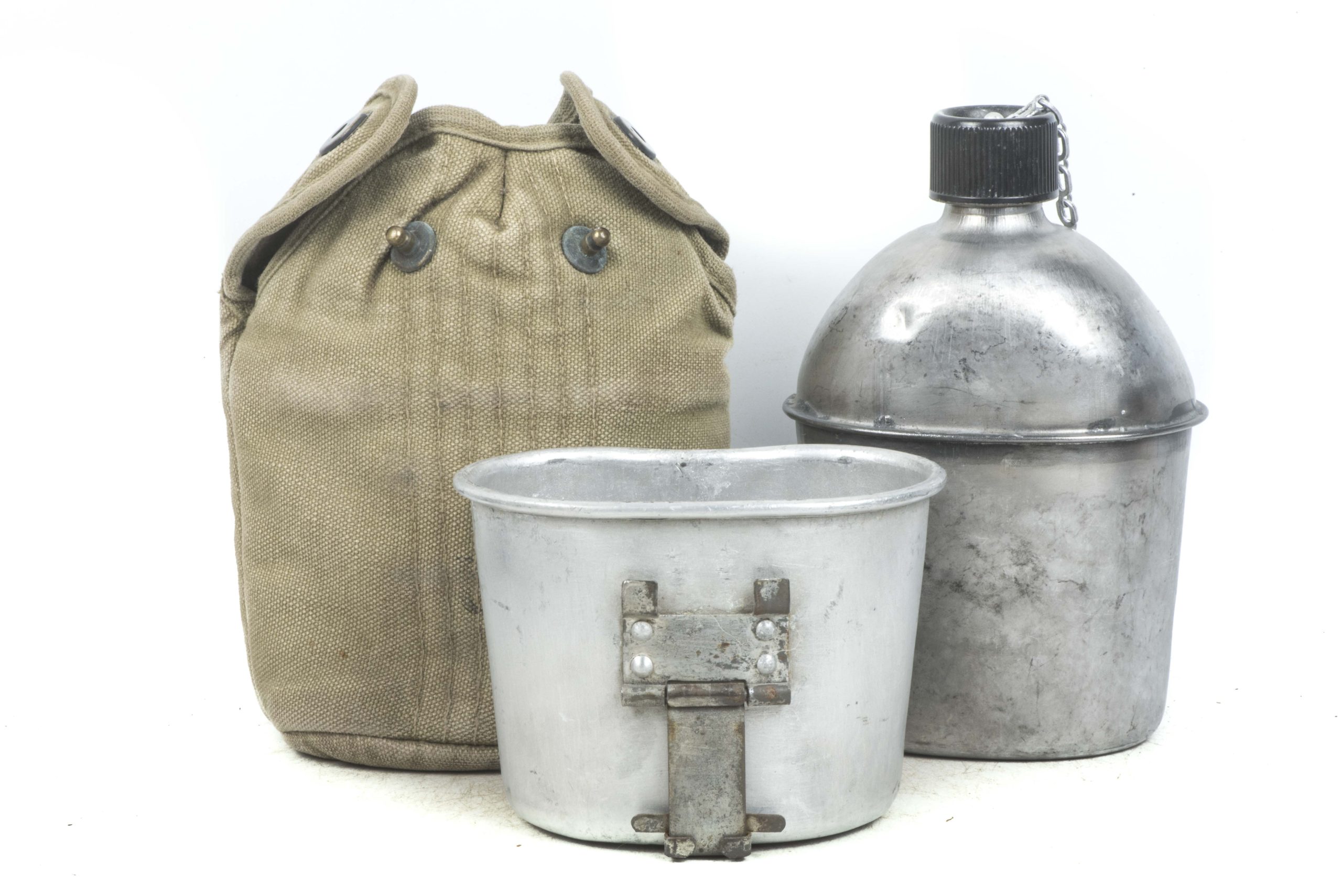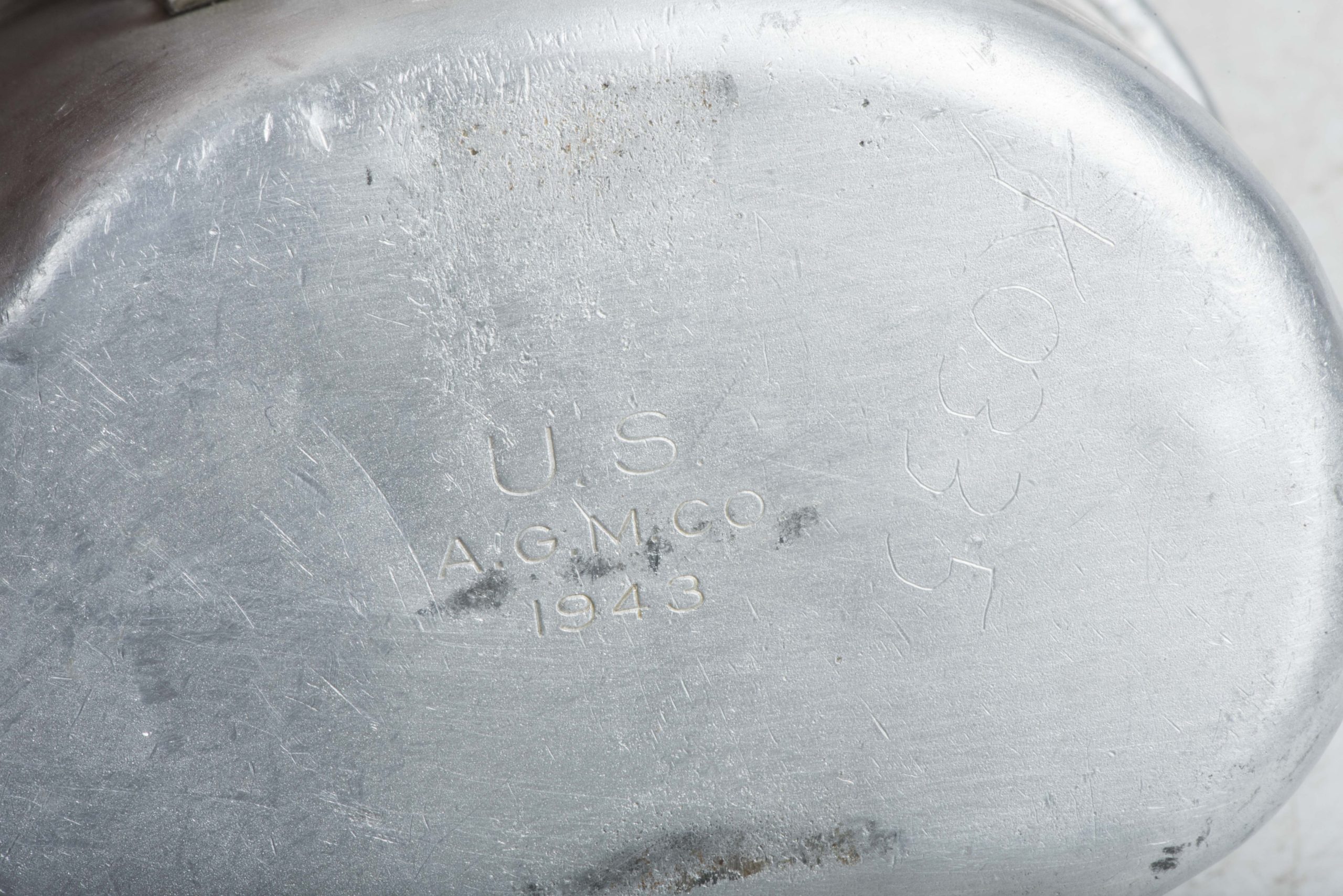 US Canteen set ID’ed K-0355 on the cup. Nice set in used condition. Less common producer on the flask.