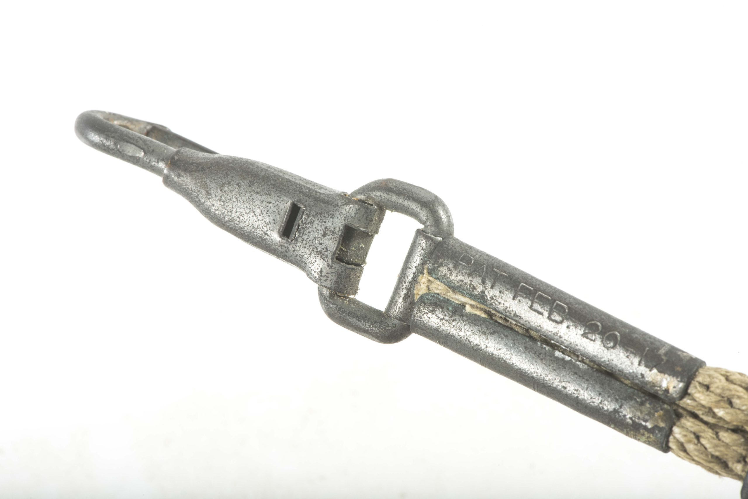Textbook First World War issue US Colt 1911 lanyard in unissued condition. These lanyards are mostly if not all dated 1917 on the snap hook. This is a excellent example!