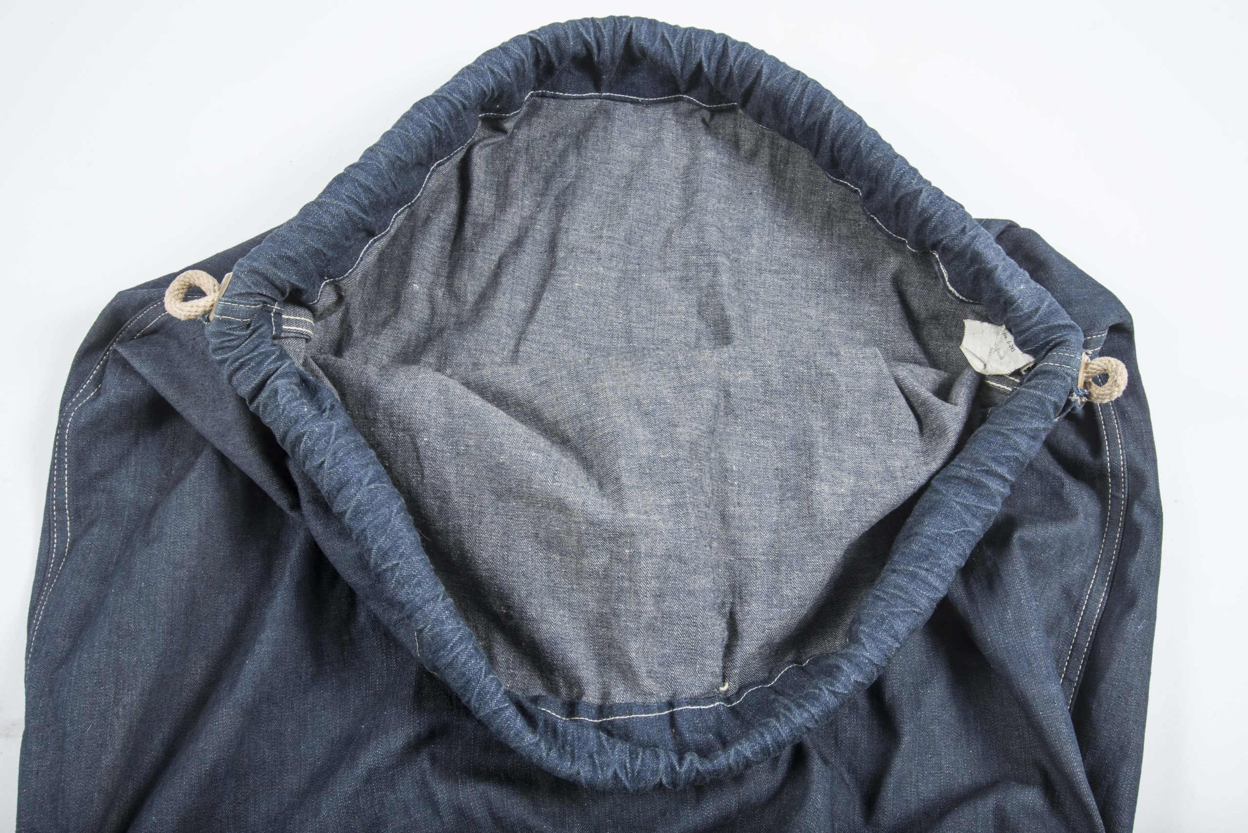 Very nice pre 1942 pattern denim duffle bag in excellent, near mint condition. Very hard to find piece of vintage workwear!
