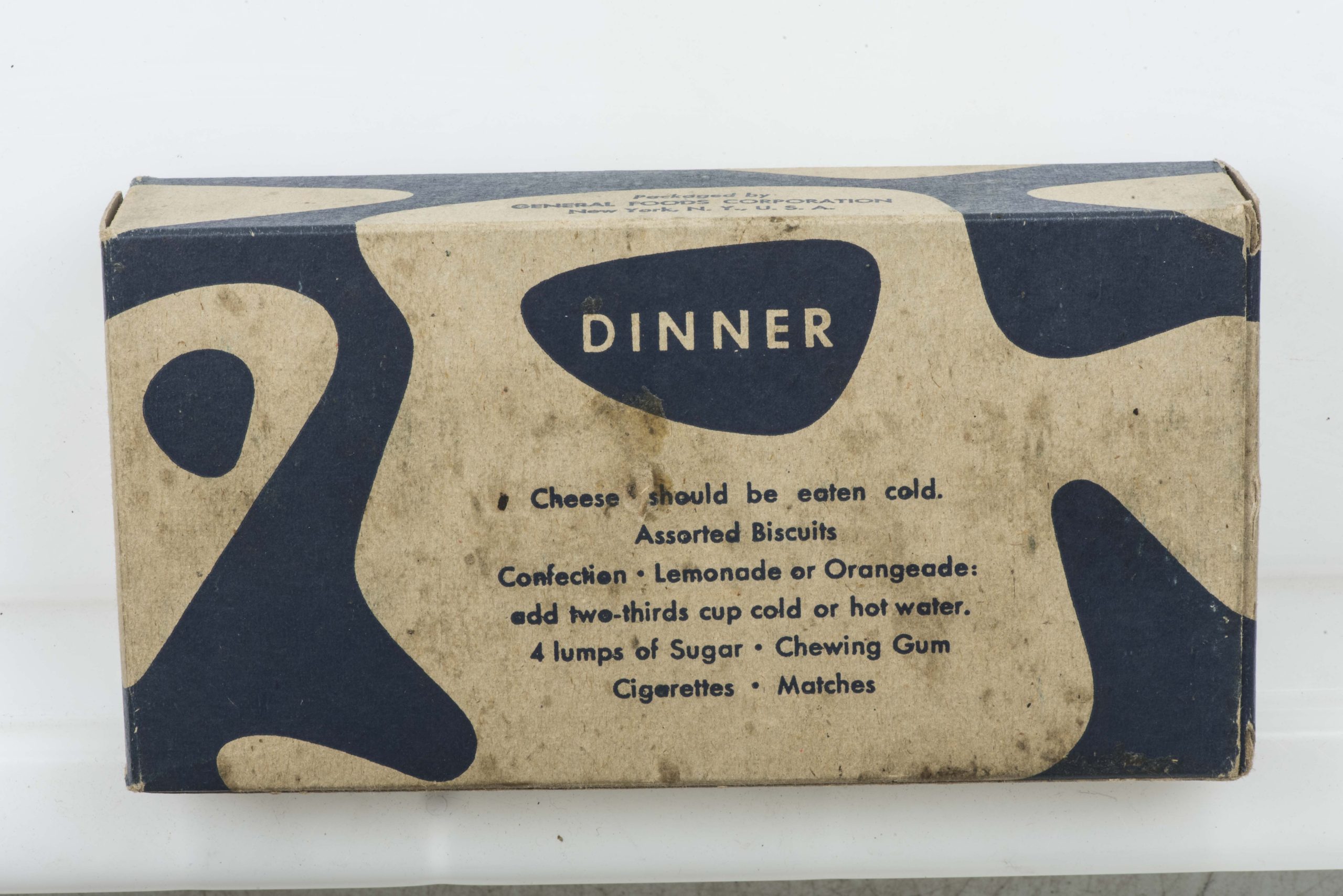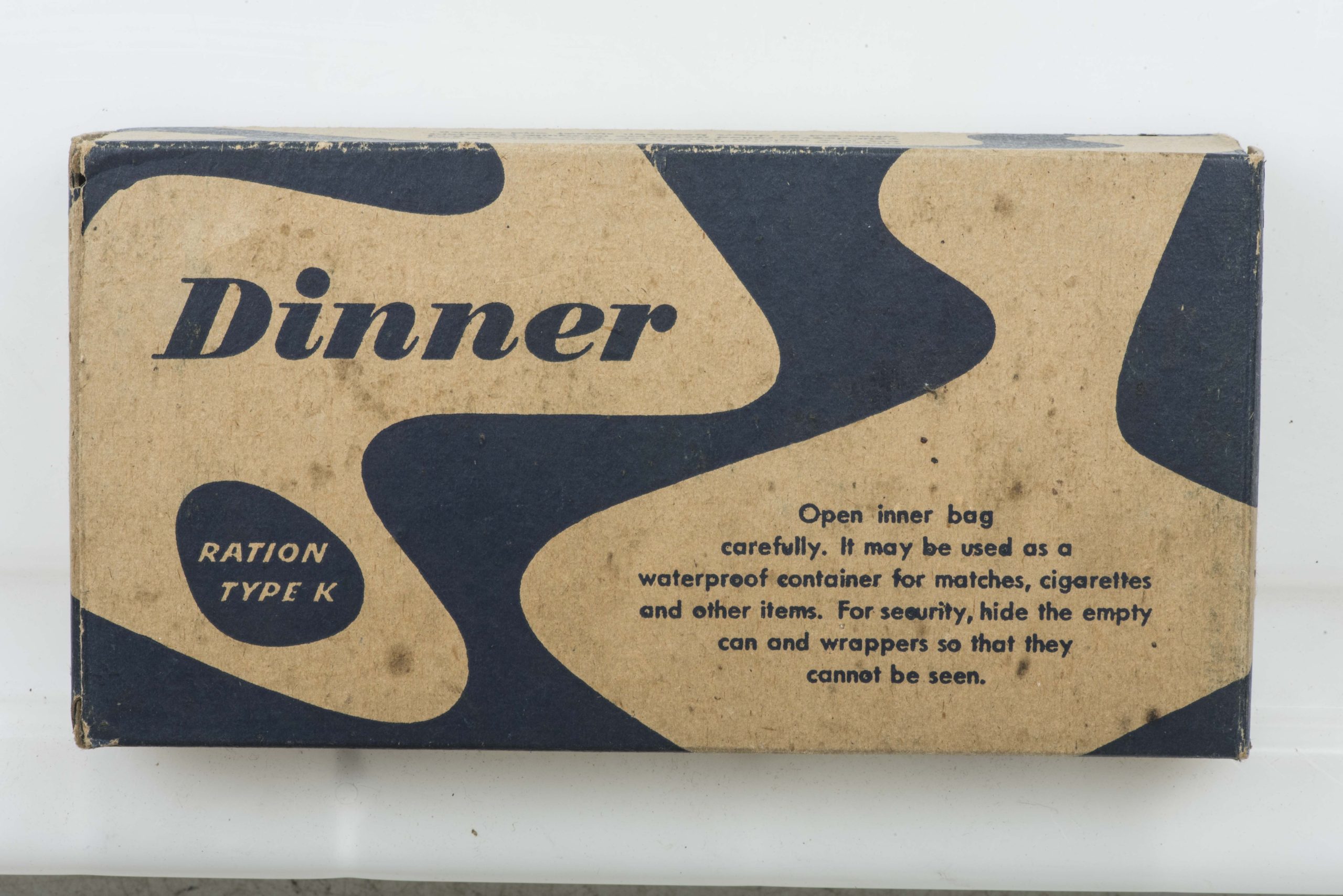 US K-Ration, Dinner in good condition. As far as I can tell it is still complete except for the contents of the small tin which is in my opinion a post war filler. None the less a very nice and hard to find piece!