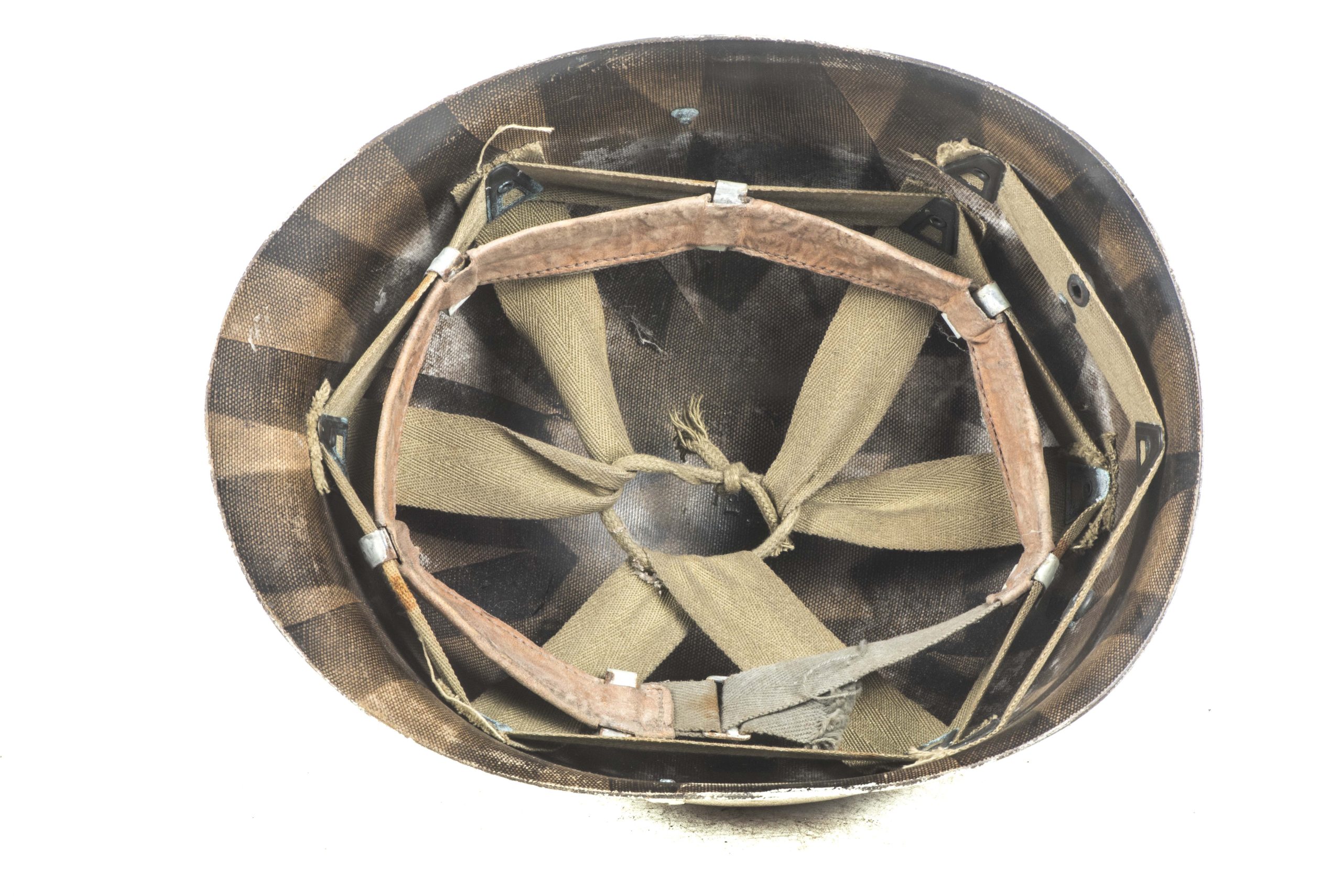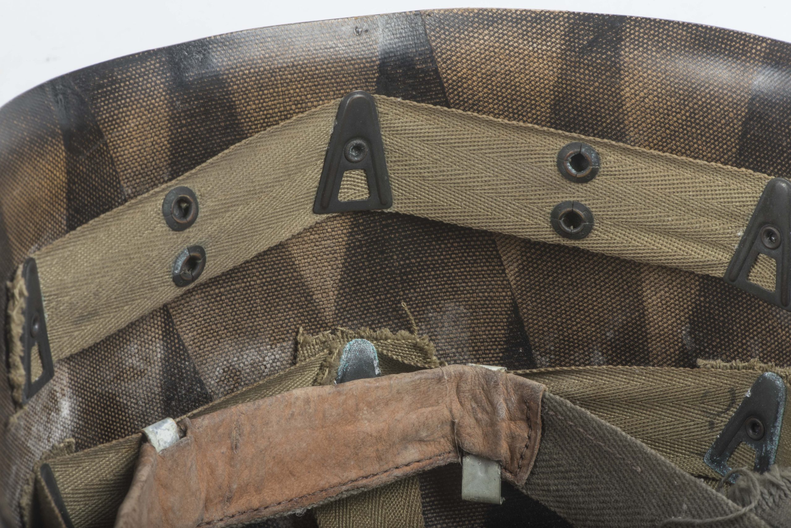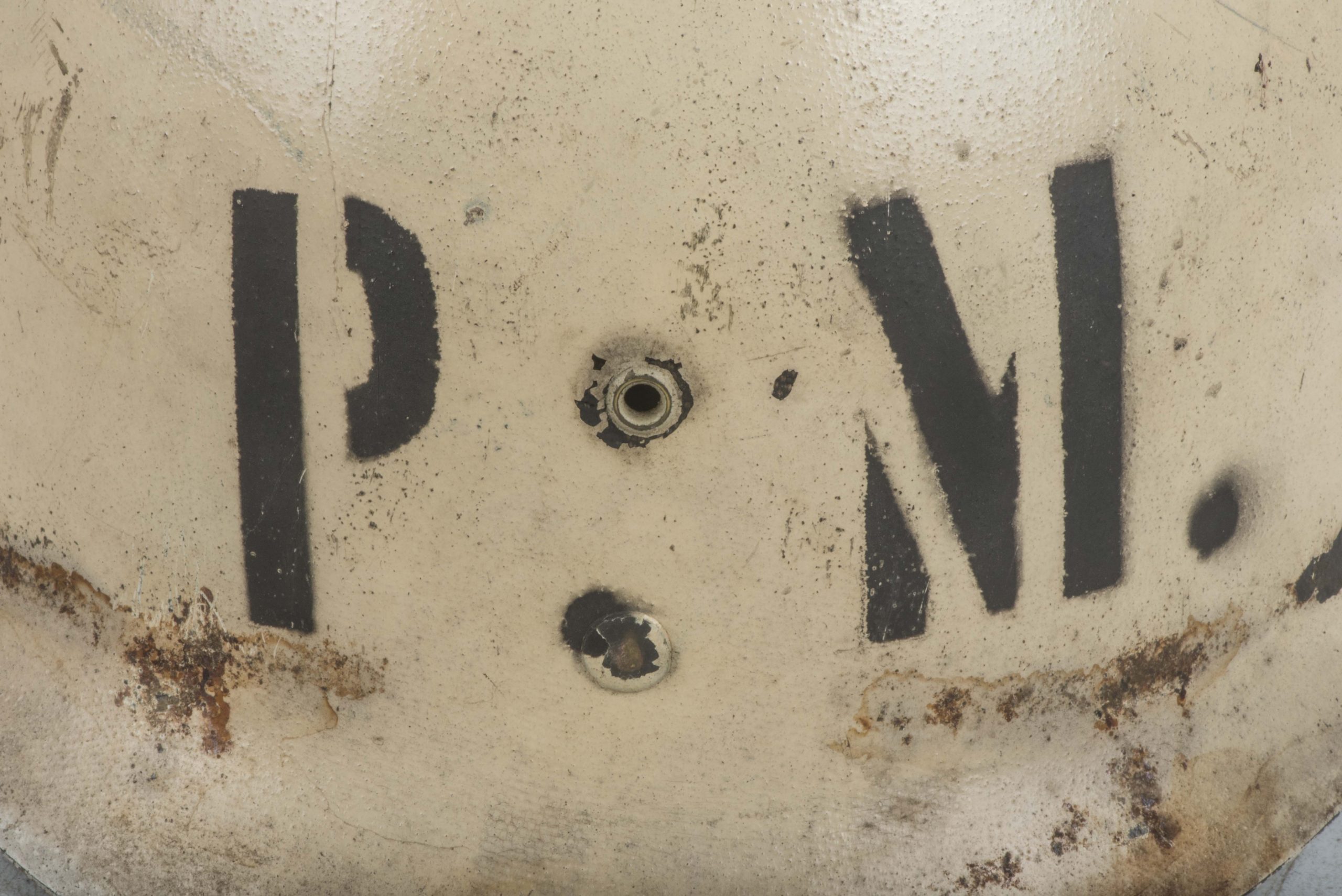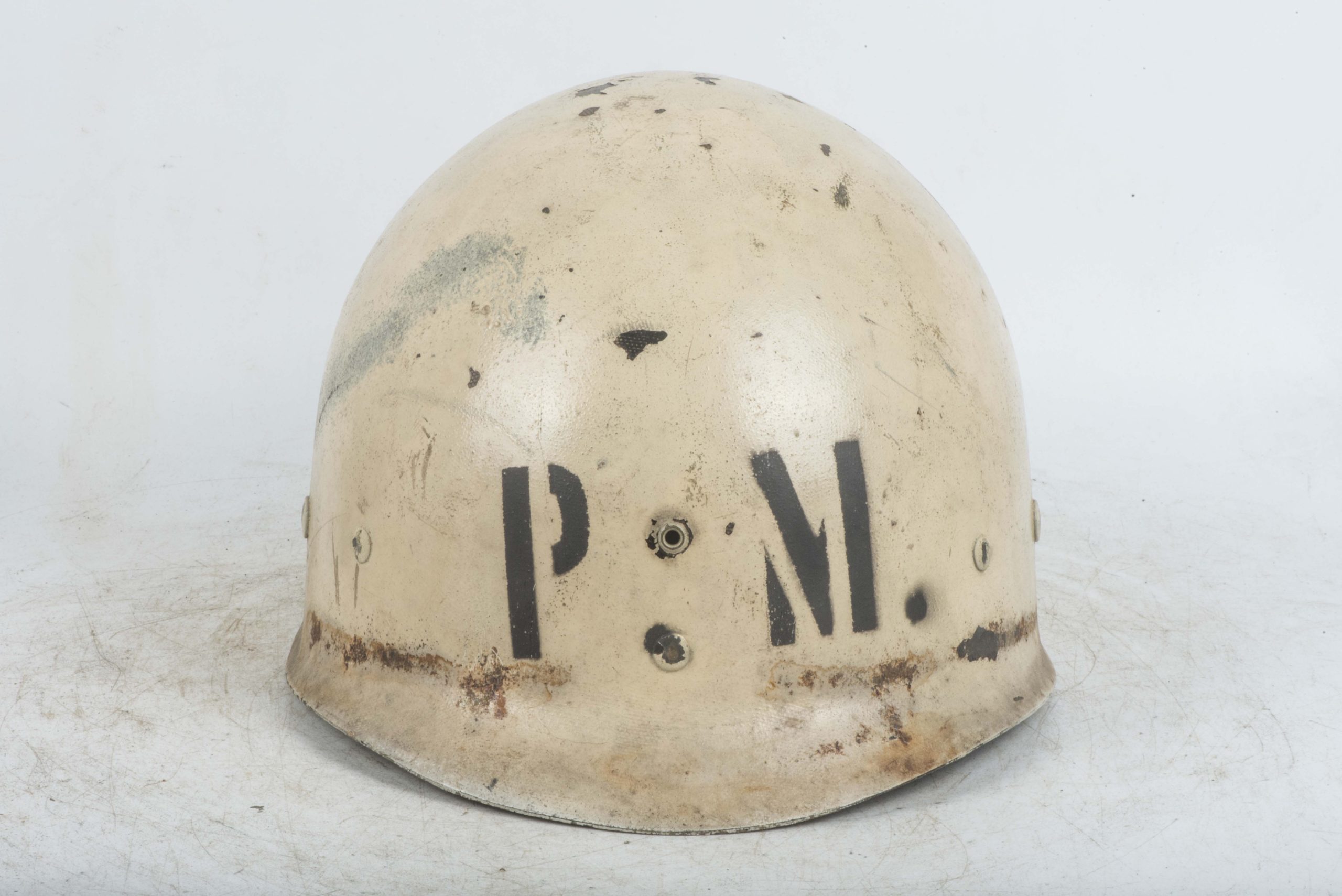 Overpainted postwar marked P.M. with postwar sweatband. Good filler.