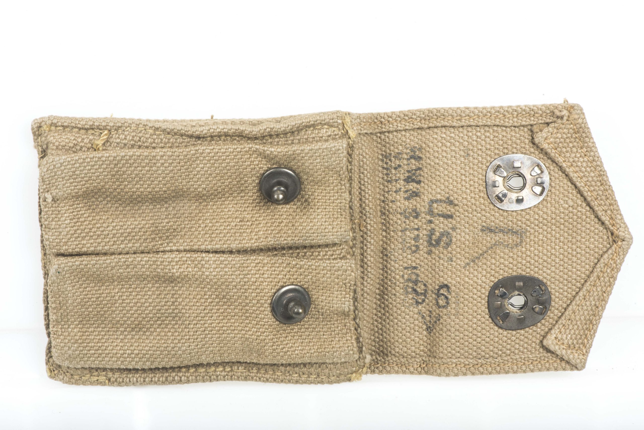 US army issue Colt M1911 magazine pouch. The pouch is nicely marked 1944 and is a British Made example.