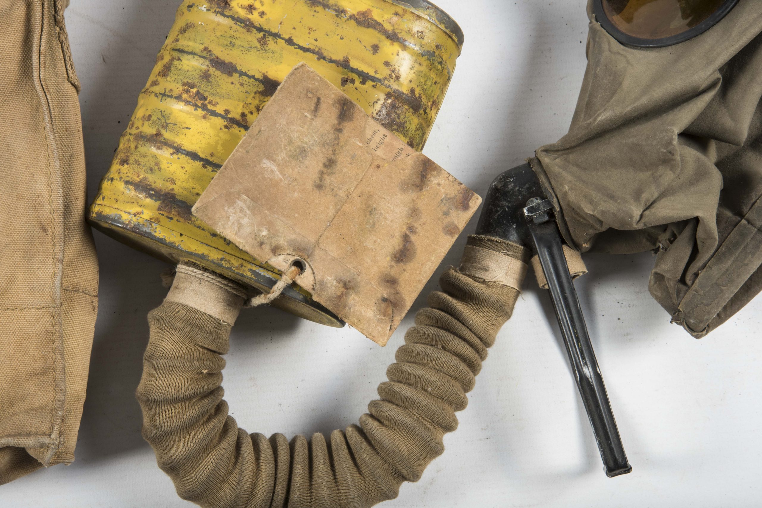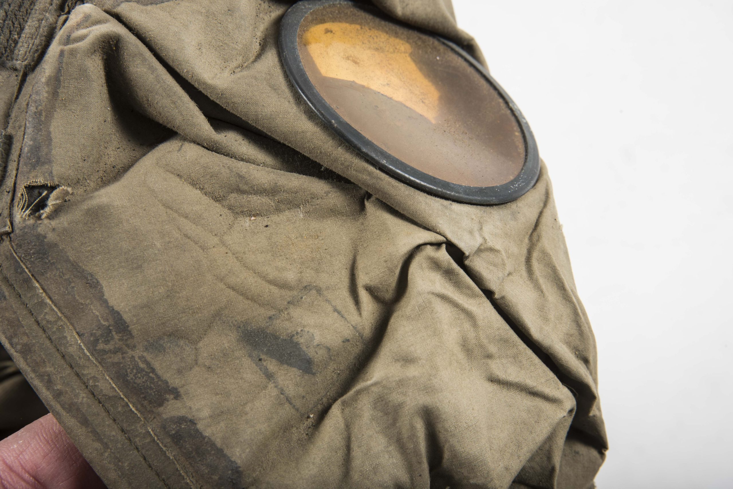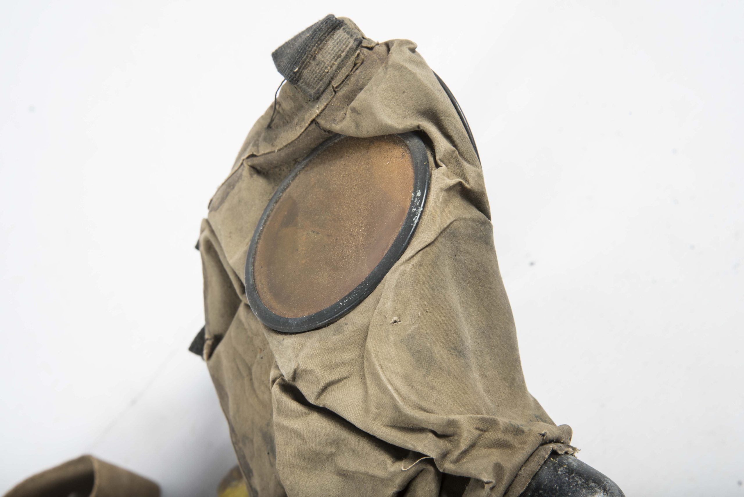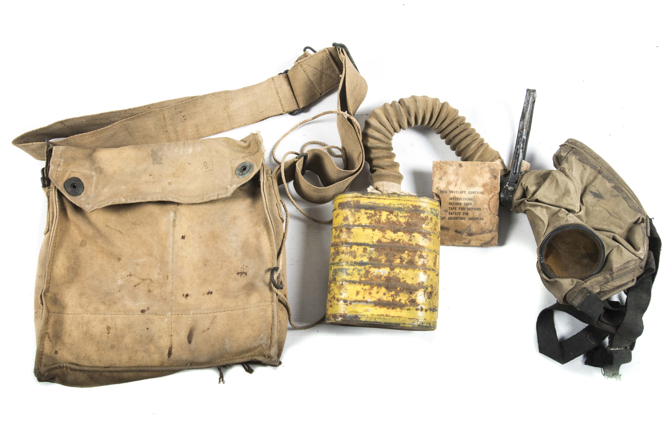 Rare US M1917 gasmask in good condition for its age. This example is complete with bag, filter, mask and manual. Hard to find example!
