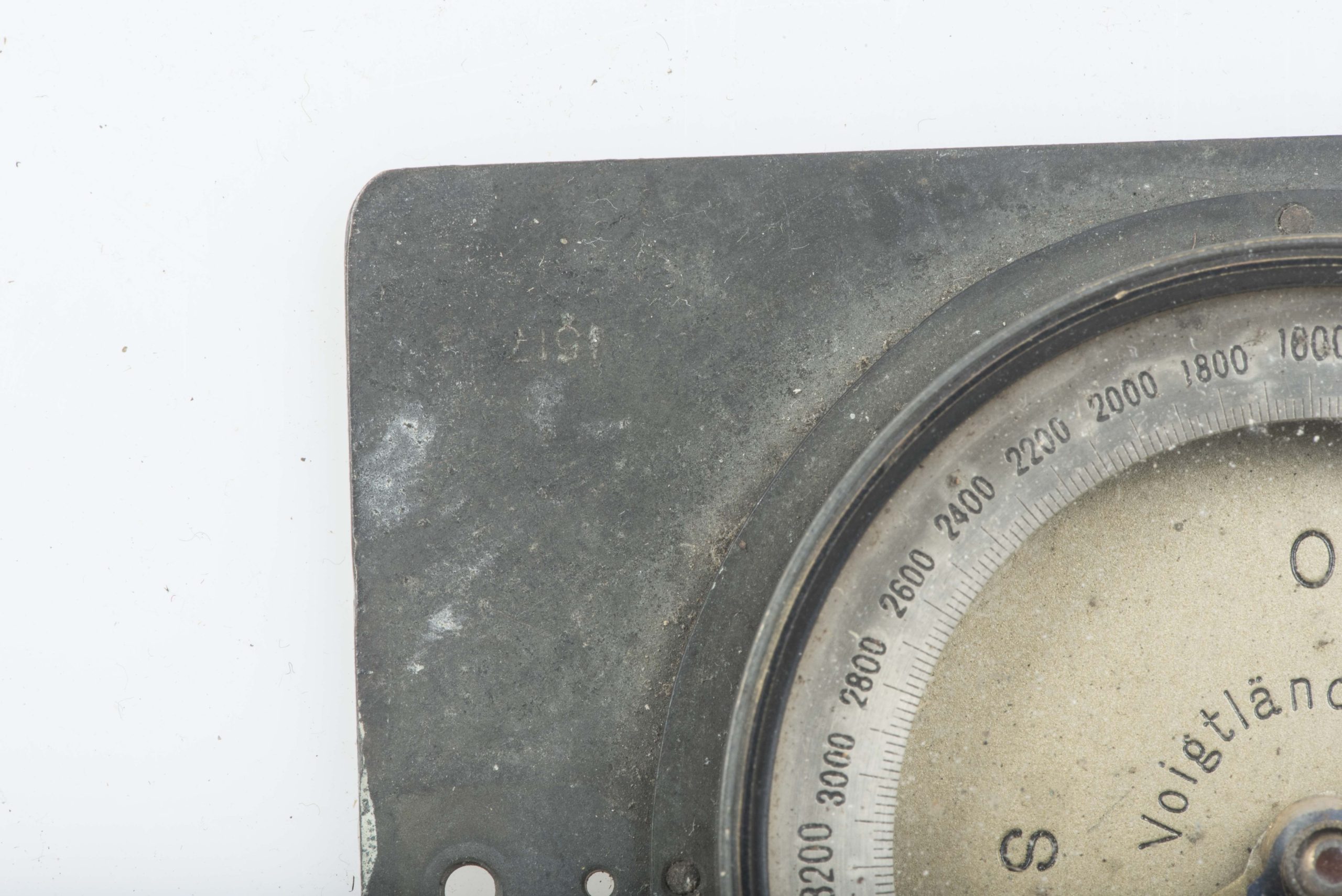 Rare large and heavy compass. This is the largest compass which would be used in the field and is easily twice the size and weight of the normal Wehrmacht issue marching compass. Meant to weigh down a map so it doesn’t blow in the wind. The compass is produced by Voightlander. Very rare and hard to find large metal officers or artillery field compass.