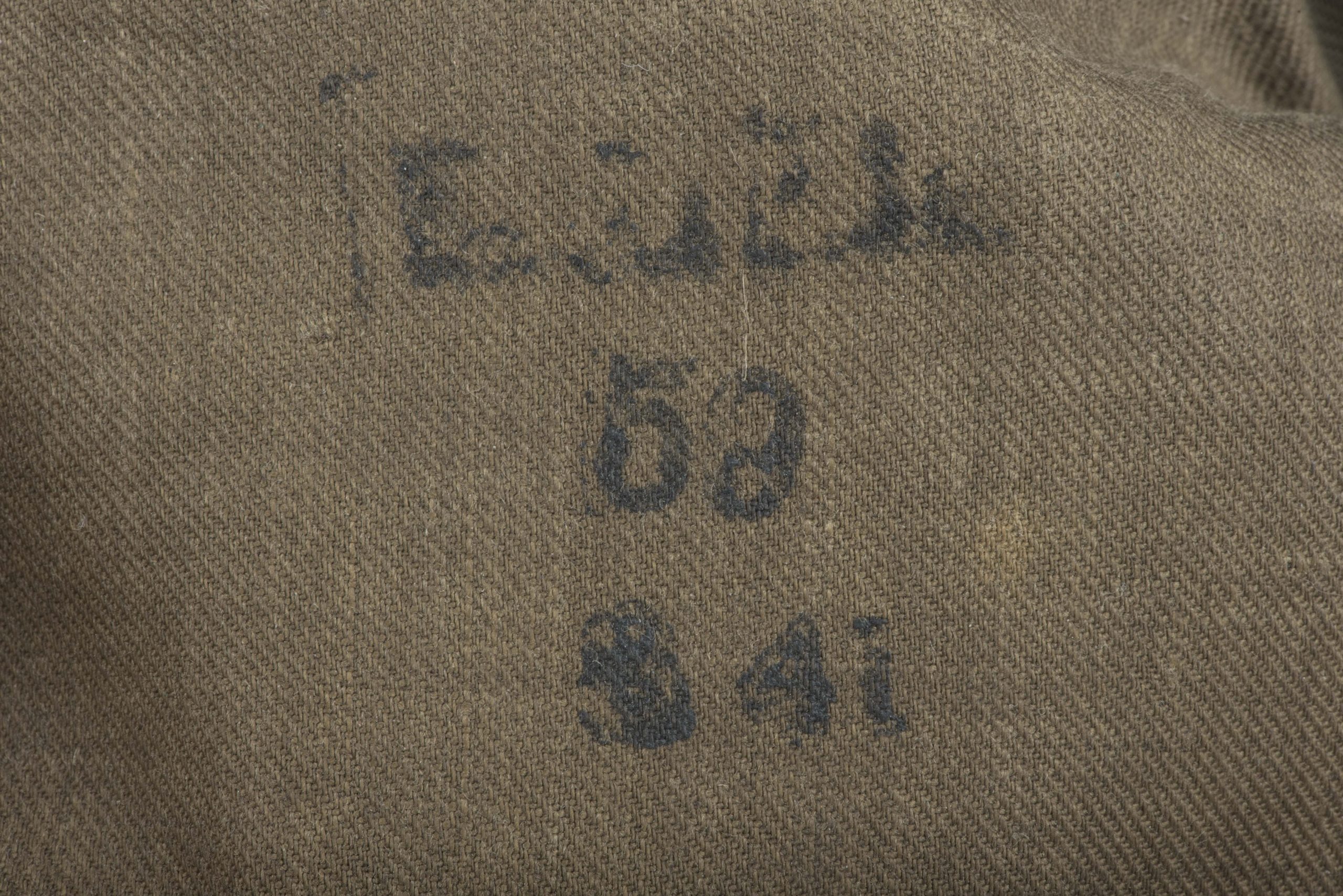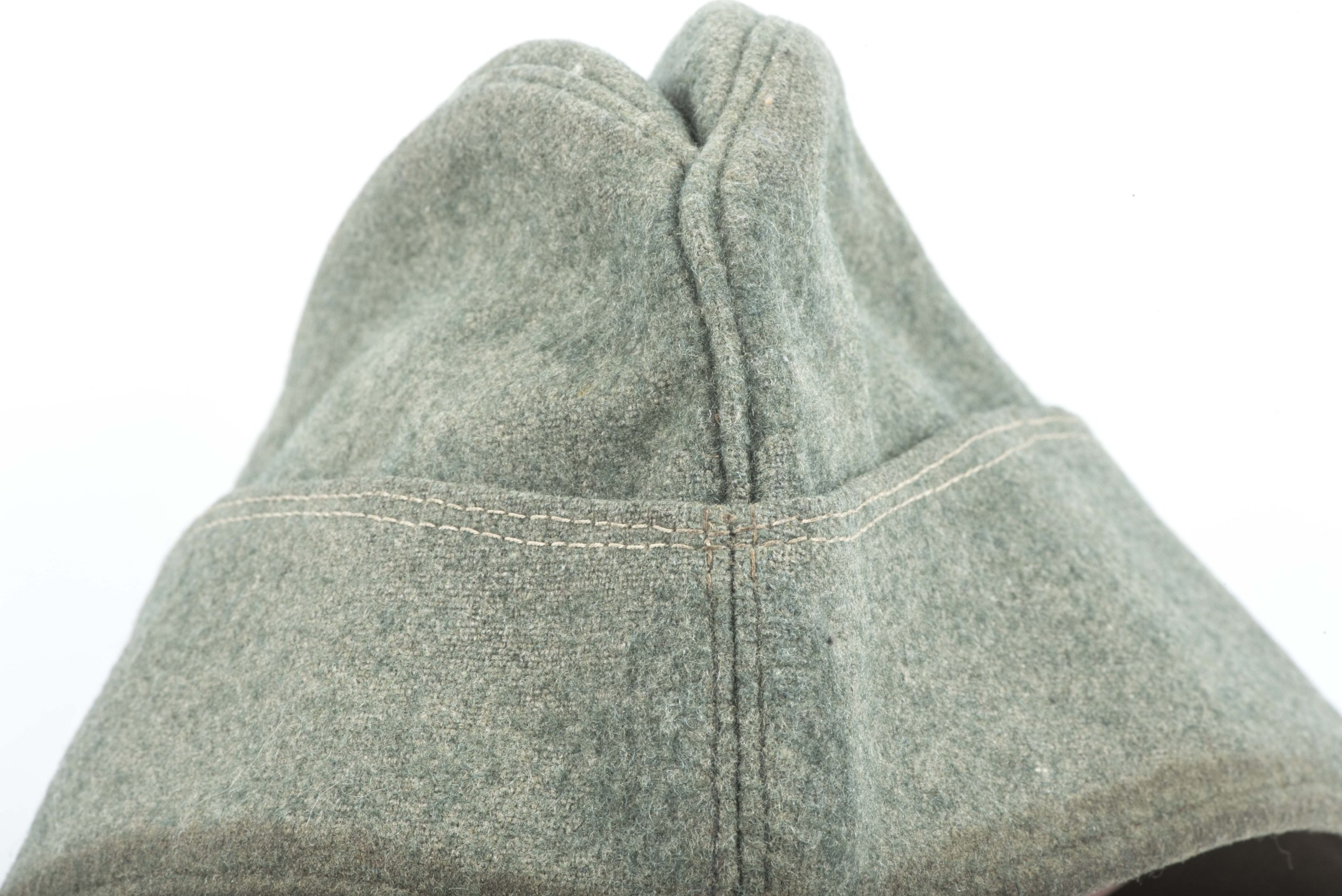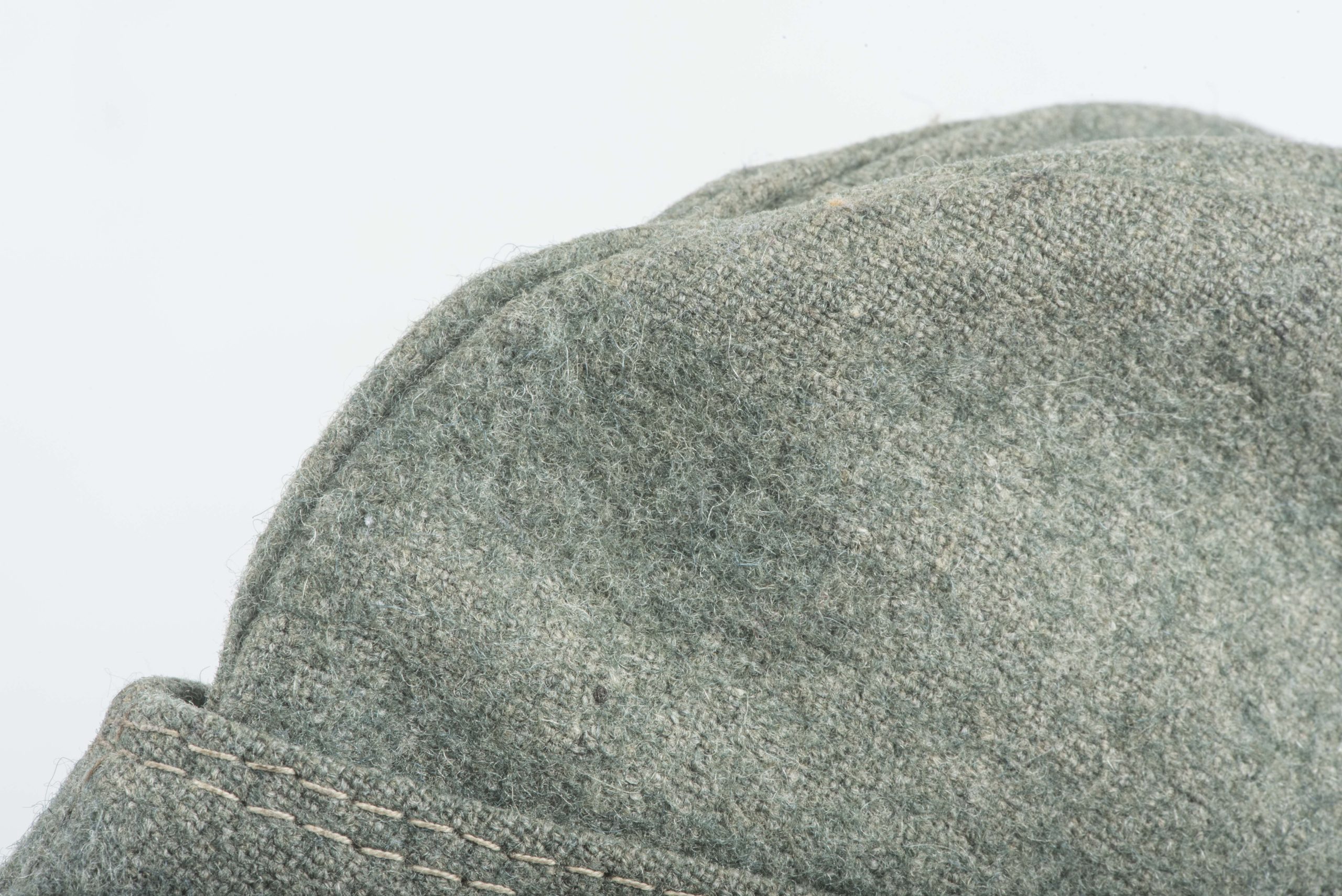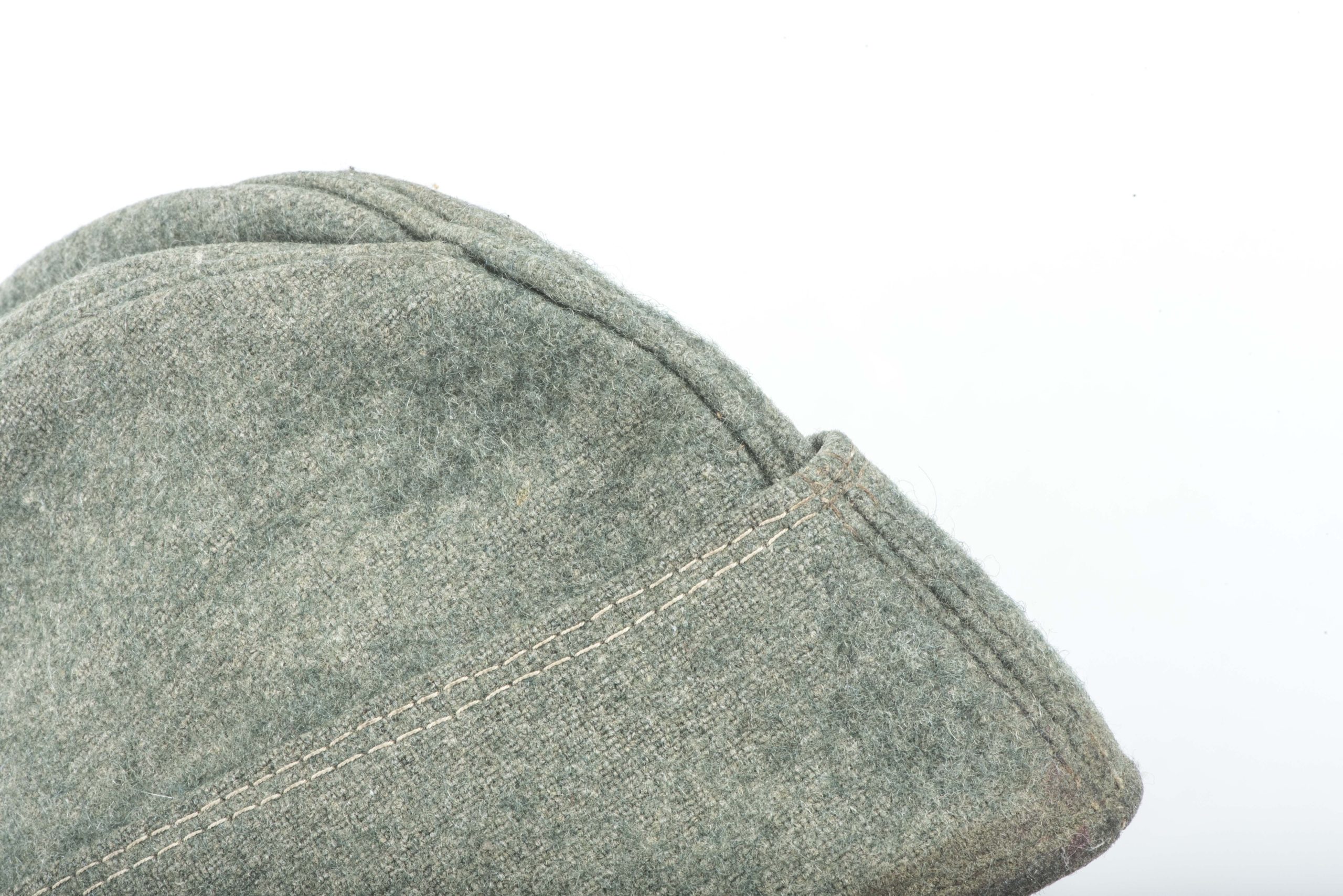 Stripped original Waffen-SS EM/NCO overseas cap in good condition. The overseas cap is a textbook example but void of insignia which left a nice shadow on the front. The markings are present and visible. The cap is in light worn condition and a nice medium to large size. Nice example!