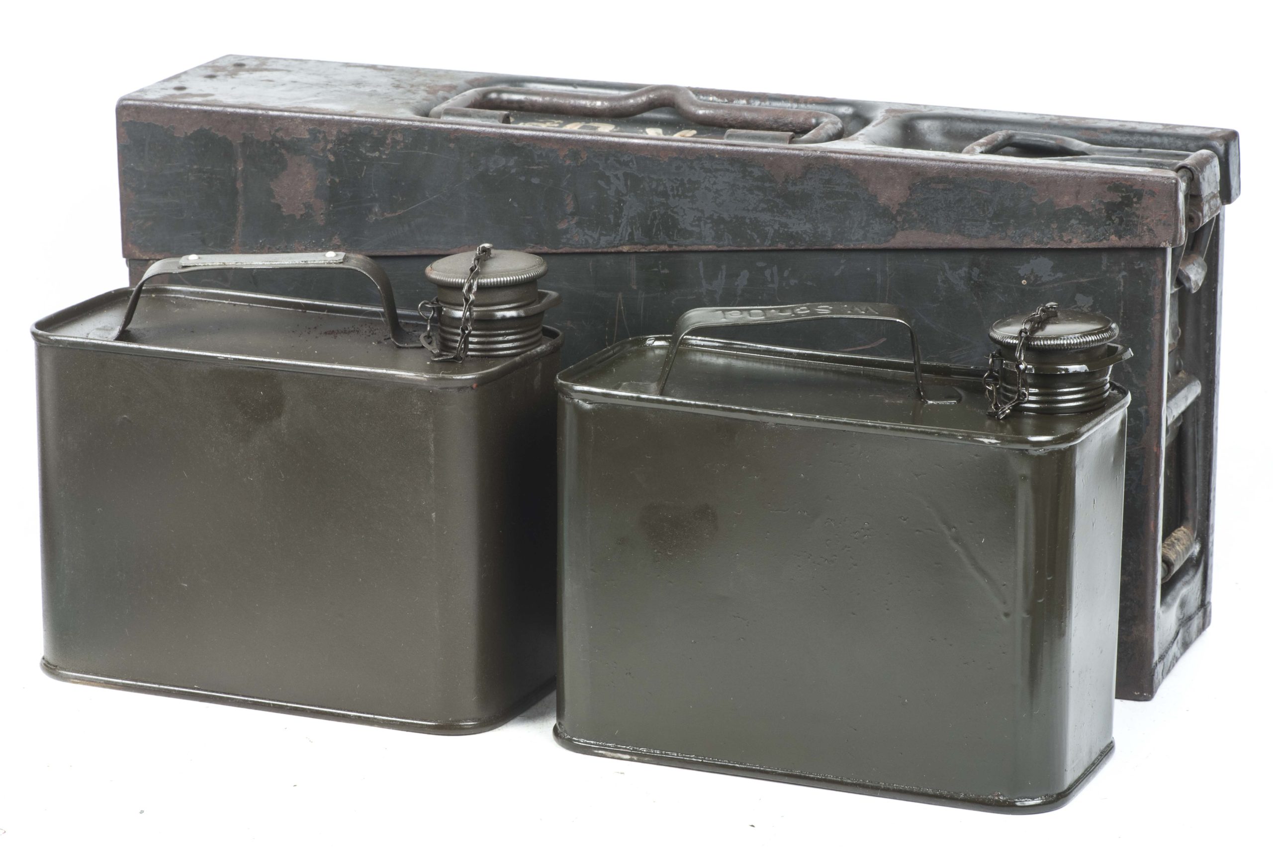 MG34 u. MG42 ammunition case WR Öl with Oil and Cleaning canisters in excellent condition. Nice homogenous set with full original paint. Hard to find complete example.