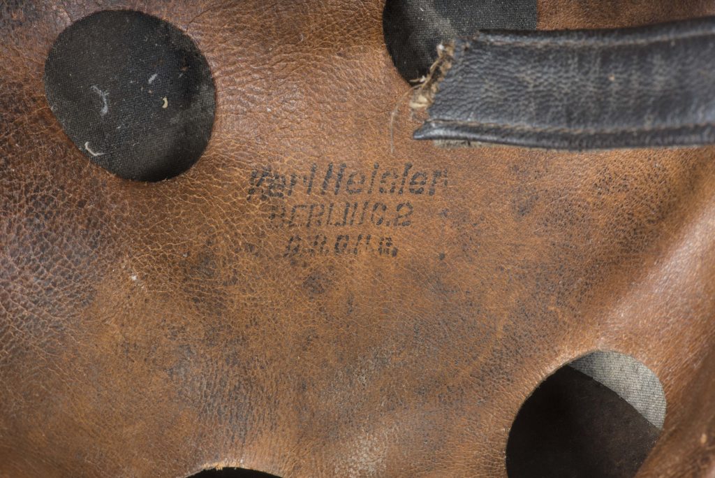 Another part of the Goliath collection is this M38 paratrooper helmet in the typical two-tone camouflage pattern. Allthough there is no readable name inside the helmet the liner looks slightly blood stained suggesting its former owner was wounded or killed in action too.