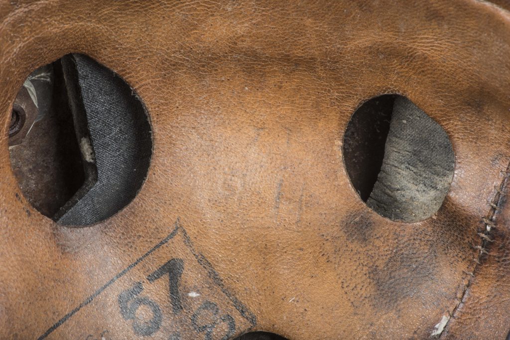 A beautiful camouflaged paratrooper helmet that originated from the Kapelsche Veer, the Netherlands. The helmet is camouflaged in a typical FJR6 camouflage pattern in two tones mixed with sawdust. The helmet was retrieved by a Dutch translator working with interrogating the German prisoners in Tilburg. The helmet has been in my friend Patricks family ever since – and still does today. A interesting feature is that the helmet is a very late war example with the last pattern chinstrap and vented aluminum bolts. The helmet retains a very fine layer of sawdust on the painted shell.